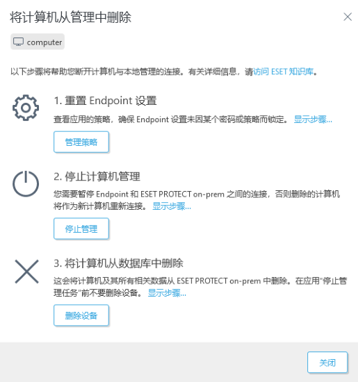 3.从数据库中删除计算机 - 确保计算机不再连接到 ESET PROTECT On-Prem 后,可以将其从托管设备列表中删除。