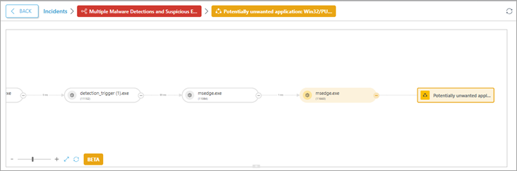 偵測—偵測清單。按一下偵測以檢視偵測詳細資料。您可以檢視包含處理程序和偵測節點的處理程序樹狀結構: